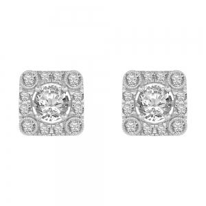 Novello Lab-grown Diamonds Square Halo Cushion Screw Studs 1.35 Ct. T.w. in 14K White Gold