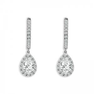Novello Lab-grown Diamonds Pear Halo Dangling Earrings 1.50 Ct. T.w. in 14K White Gold