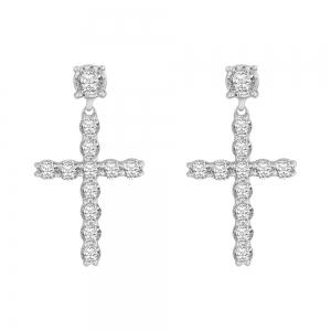 1/2 Ct. T.w. Diamond Cross Earrings In 14Kt White Gold