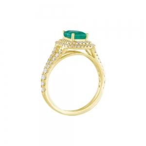 0.7CT. T.W. DIAMOND 1.00CT EMERALD DOUBLE HALO SPLIT SHANK LADYS RING IN 14KT GOLD