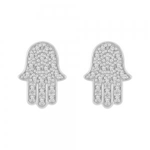 0.16 Ct. T.w. Diamond Hamsa Hand Stud Earrings