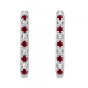 Ruby and Diamond Heart-set Huggie Hoops - 0.50 Ct. T.w. in 14K White Gold