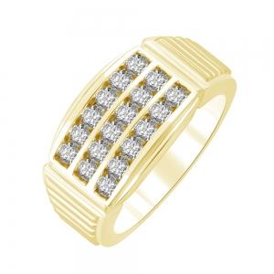 Ultimate Value® Lab-grown Diamonds 3-Row Channel-set with Ribbed Shoulders Men's Fashion Ring - 0.50 Ct. T.w. in 10K Yellow Gold