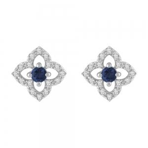 Novello Lab-grown Diamonds Sapphire Floral Earrings 0.15 Ct. T.w. in 10K White Gold