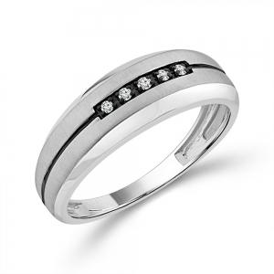 0.05 Ct. T.w. Diamond 5-stone Satin Black Men Engagement Ring In 10Kt White Gold
