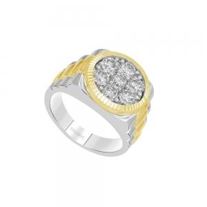 2 Ct. T.w. Diamond Cluster Satin Finish Men Fashion Ring In 14Kt White Yellow Gold