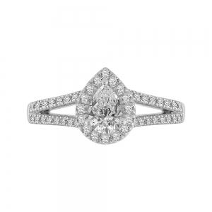 Diani® Brilliant-cut Pear Halo Bridal Ring Set - 1 Ct. T.w. in 14K White Gold