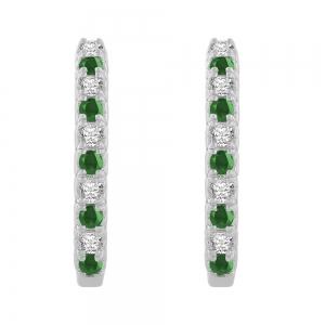 Emerald and Diamond Heart-set Huggie Hoops - 0.60 Ct. T.w. in 14K White Gold