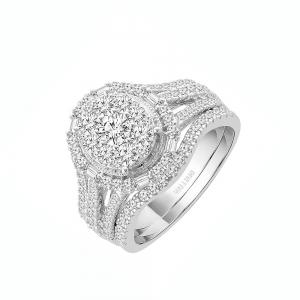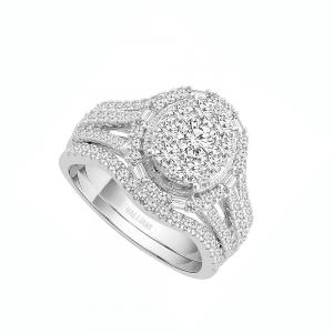 Everlasting Love® Round And Baguette Halo Diamond Bridal Ring Set - 1.50 Ct. T.w.
