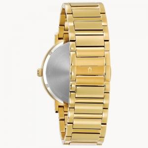 In black IP and gold-tone stainless steel with three diamonds on black dial, three-hand date feature, metalized edge-to-edge curved crystal, screw-back case, gold-tone stainless...