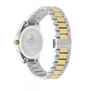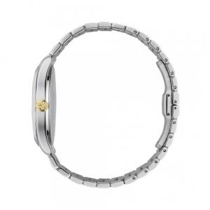 Steel case, silver dial with yellow gold feline head motif, steel and yellow gold PVD bracelet