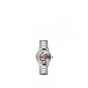 Steel case, silver dial with colored snake motif, steel bracelet