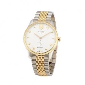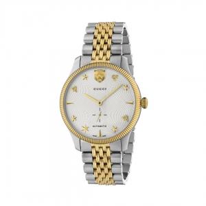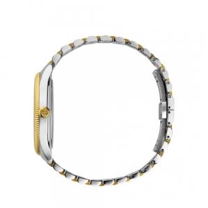 Steel case and yellow gold PVD bezel, silver guilloch� dial with multi icon indexes, 7 links bracelet in yellow gold PVD and steel