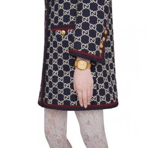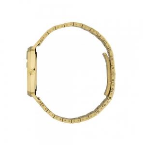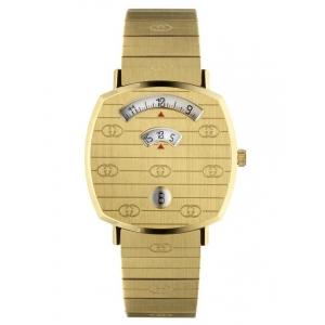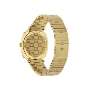 Yellow gold PVD case with GG engraved, 3 windows indicating hour, minute & date, yellow gold PVD bracelet with GG engraved