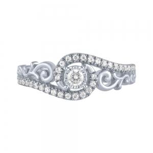 Lab-grown Diamond Round Halo RBC Bezel Pave-set Promise Ring 0.25 Ct. T.w. in 10K White Gold