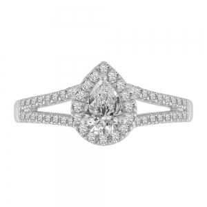 1/2 Ct. Center & 1 Ct. T.w. Lab-grown Pear Halo Split Shank Wedding Ring Set - Novello In 14Kt White Gold