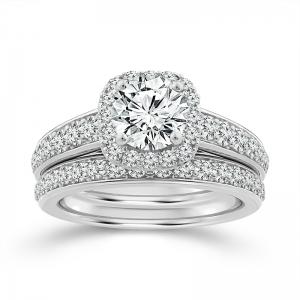 Everlasting Love® Cushion Cluster Halo Diamond Bridal Set - 1.75 Ct. T.w. in 14K White Gold