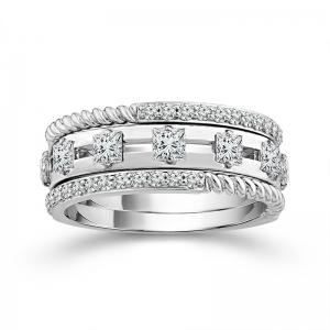 Novello Lab-grown Diamonds 3-row Princess-cut Band with Rope Detailing - 0.60 Ct. T.w. in 14k White Gold