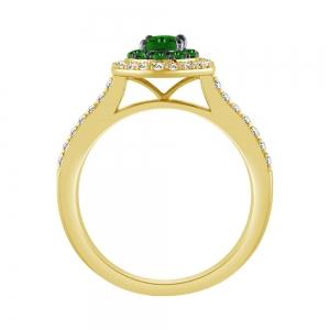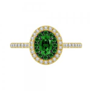 Oval Emerald with Double Halo Diamond Ring - 0.30 Ct. T.w. in 14K Yellow Gold