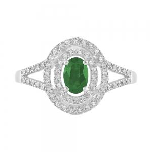 Oval Emerald With Double Halo & Split Shank Diamond Ring - 0.25 Ct. T.w.