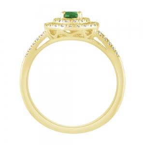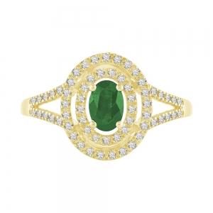 Oval Emerald with Double Halo & Split Shank Diamond Ring - 0.25 Ct. T.w. in 10K Yellow Gold