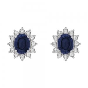 Oval Sapphire Starburst Diamond Screw Studs - 4.45 Ct. T.w.