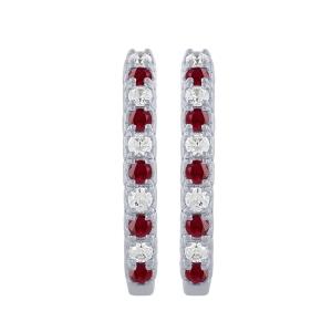 Ruby and Diamond Heart-set Huggie Hoops - 0.50 Ct. T.w. in 14K White Gold